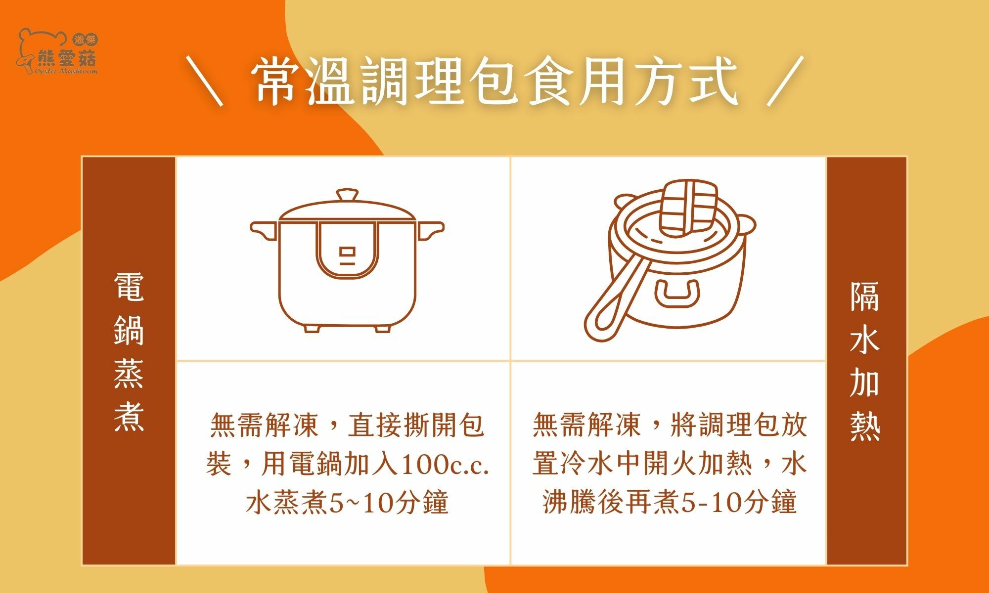 *隔水加熱或電鍋蒸煮,在家外出皆可方便料理